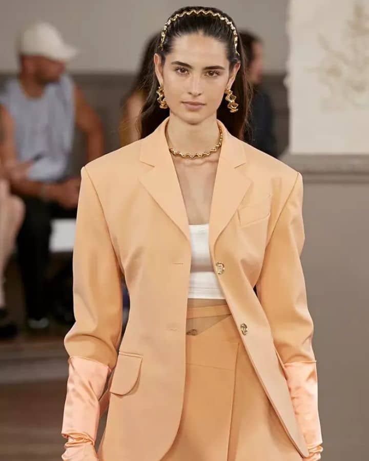 Pukeutumisessa herttainen Peach Fuzz väri otetaan Pantonen mukaan haltuun pehmeiden materiaalien myötä: sametti, tikkikankaat, mokkanahka ja pörröiset materiaalit saavat nyt persikkaisen sävyn.